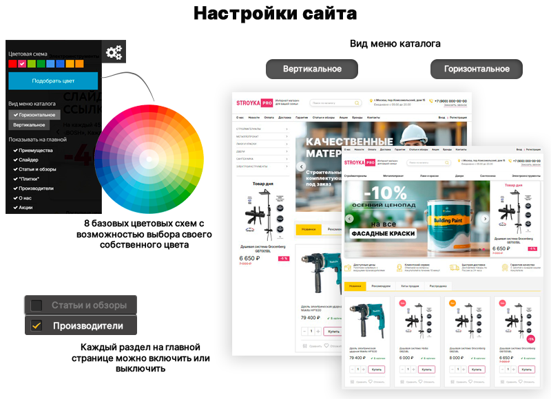 Готовое решение «STROYKA - магазин ремонт и стройка,электроинструмент,всё для авто и др.» — Готовые интернет-магазины на 1С-Битрикс. Компания СУАБ адаптирует проект под вашу отрасль, настраивает интеграцию с Bitrix24 и 1С, помогает внедрить CRM и выстроить продажи. Есть вопросы? Напишите нам WhatsApp или TelegramНаша почта samovar-web@bk.ruТехподдержка по уже купленным решениям samovar-cont@bk.ruНОВИНКА 2025 ГОДА.БЫСТРЫЙ.ЛЕГКИЙ.СВЕЖИЙ ДИЗАЙН И УДОБНАЯ МОБИЛЬНАЯ ВЕРСИЯГотовый интернет-магазин STROYKA - это коробочное решение для создания интернет-магазина для разных тематик. Сайт ориентирован на продажу мужских товаров: электроинструмент, всё для ремонта и ст