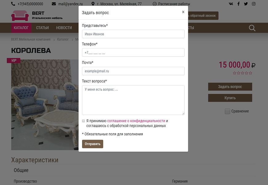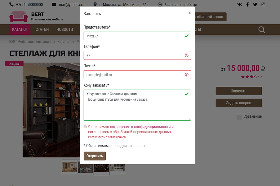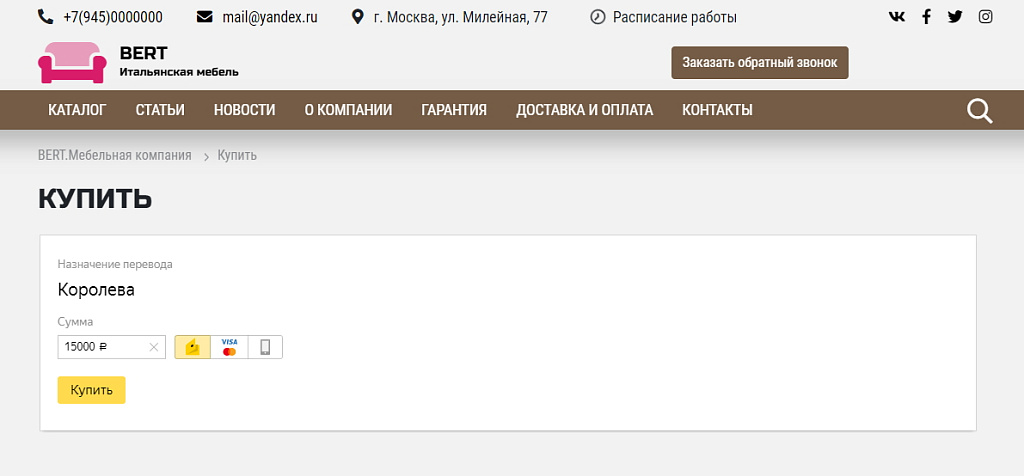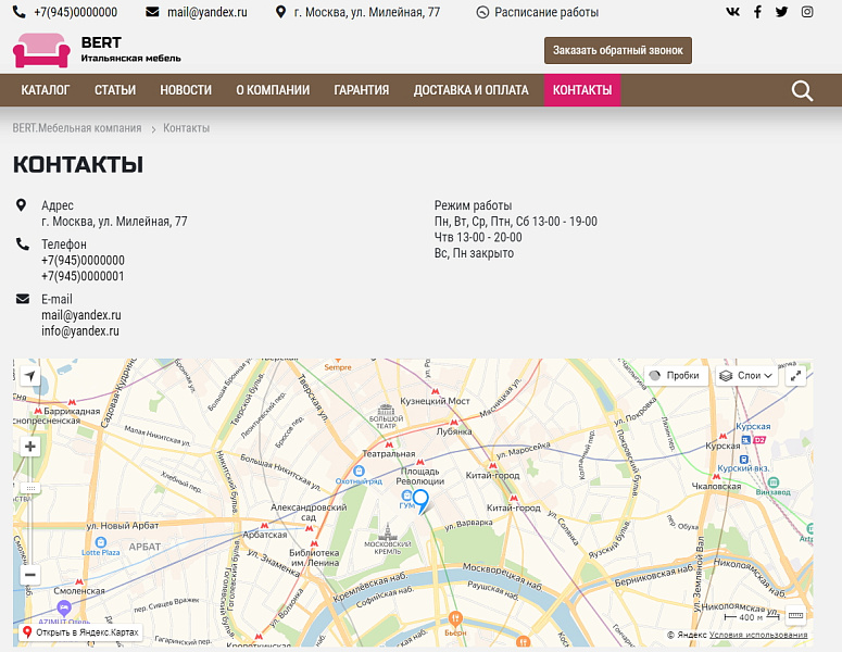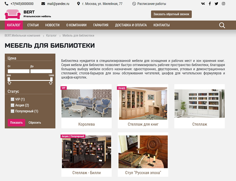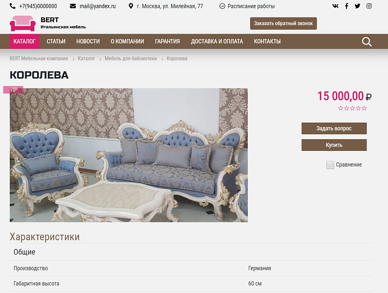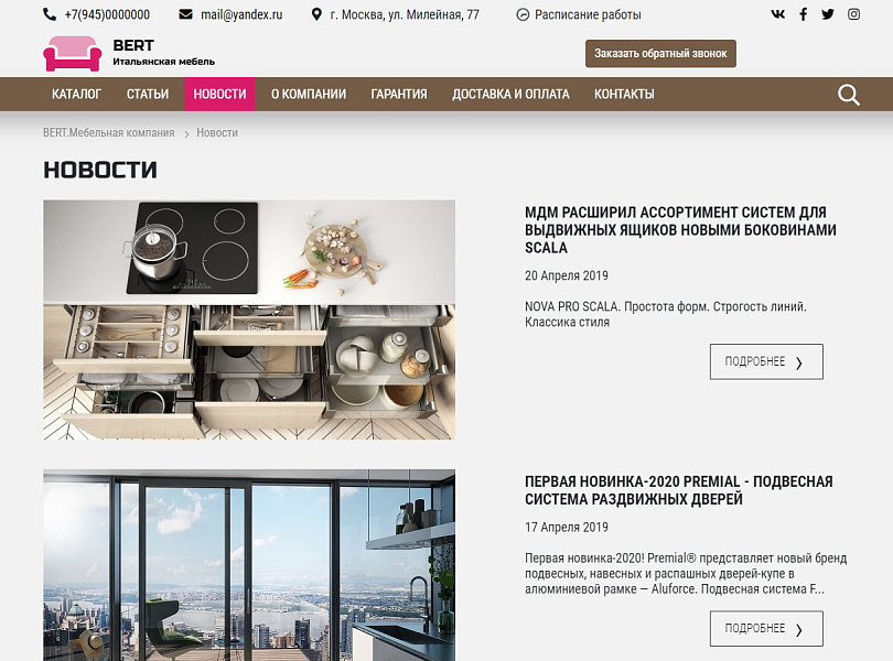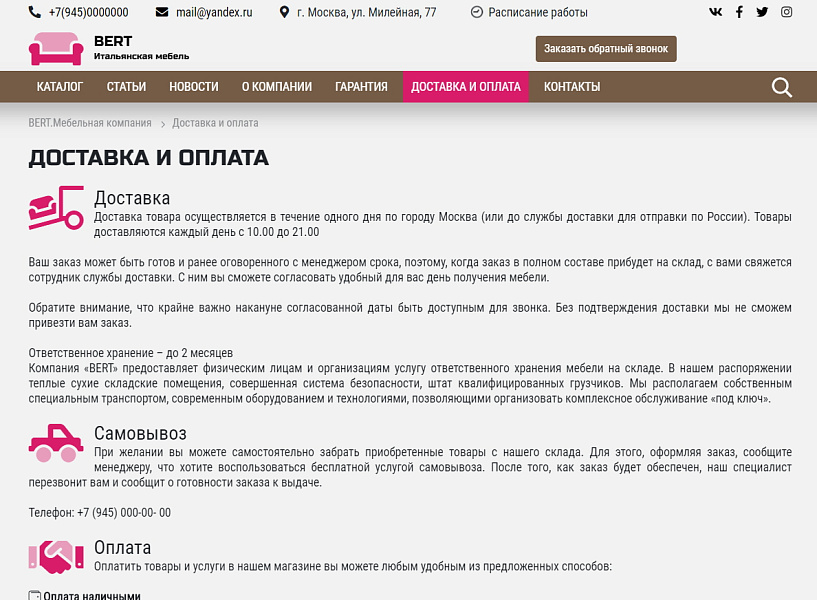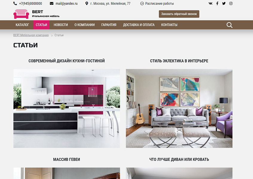 КоЛайн: BERT2- сайт мебельной компании